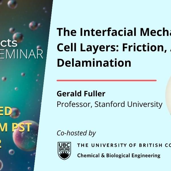 November 24, 2021 BPI SEMINAR BY DR. GERALD FULLER TITLE The Interfacial Mechanics of Ocular Cell Layers: Friction, Adhesion and Delamination DATE & TIME November 24th Wednesday 11AM-12PM PST LOCATION CHBE Room 202, 2360 East Mall, Vancouver, BC V6T 1Z3 (Sorry no Zoom link, In-person Only) Learn more