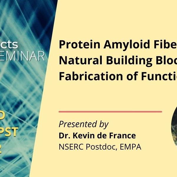 December 1, 2021 BPI SEMINAR BY DR. KEVIN DE FRANCE TITLE Protein Amyloid Fibers: Emerging Natural Building Blocks for the Fabrication of Functional Materials DATE & TIME December 1st Wednesday 3PM-4PM PST LOCATION CHBE Room 202, 2360 East Mall, Vancouver, BC V6T 1Z3 (Sorry no Zoom link, In-person Only) Learn more