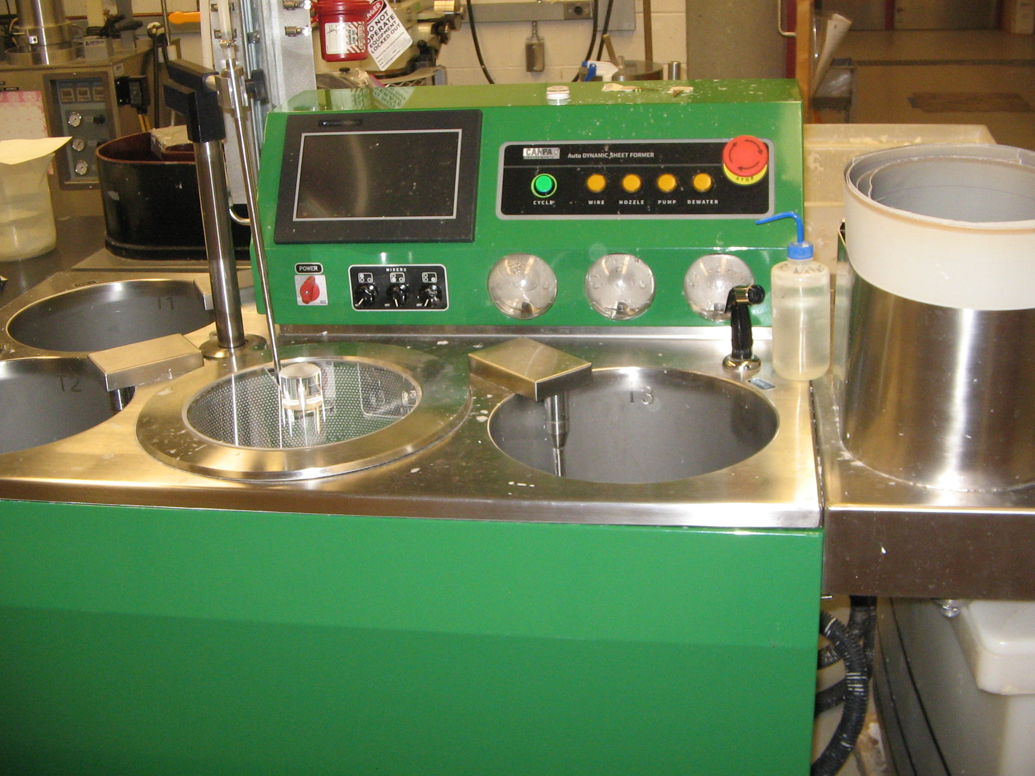 Paper sheet former that creates single to multilayered sheets using different pulp types (contains four separate stock chambers).