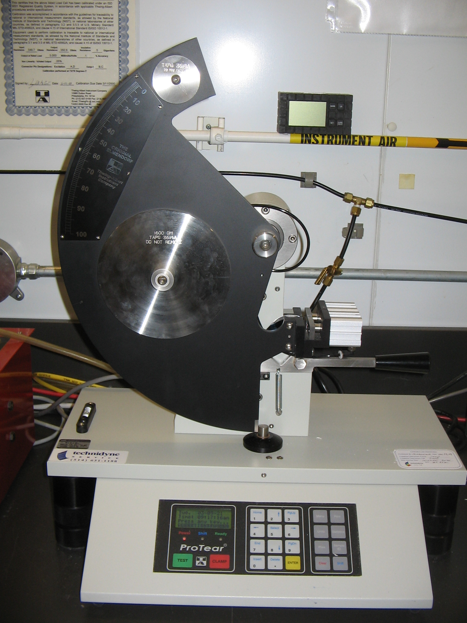 Tearing strength testing for plastic films, paper, other thin materials